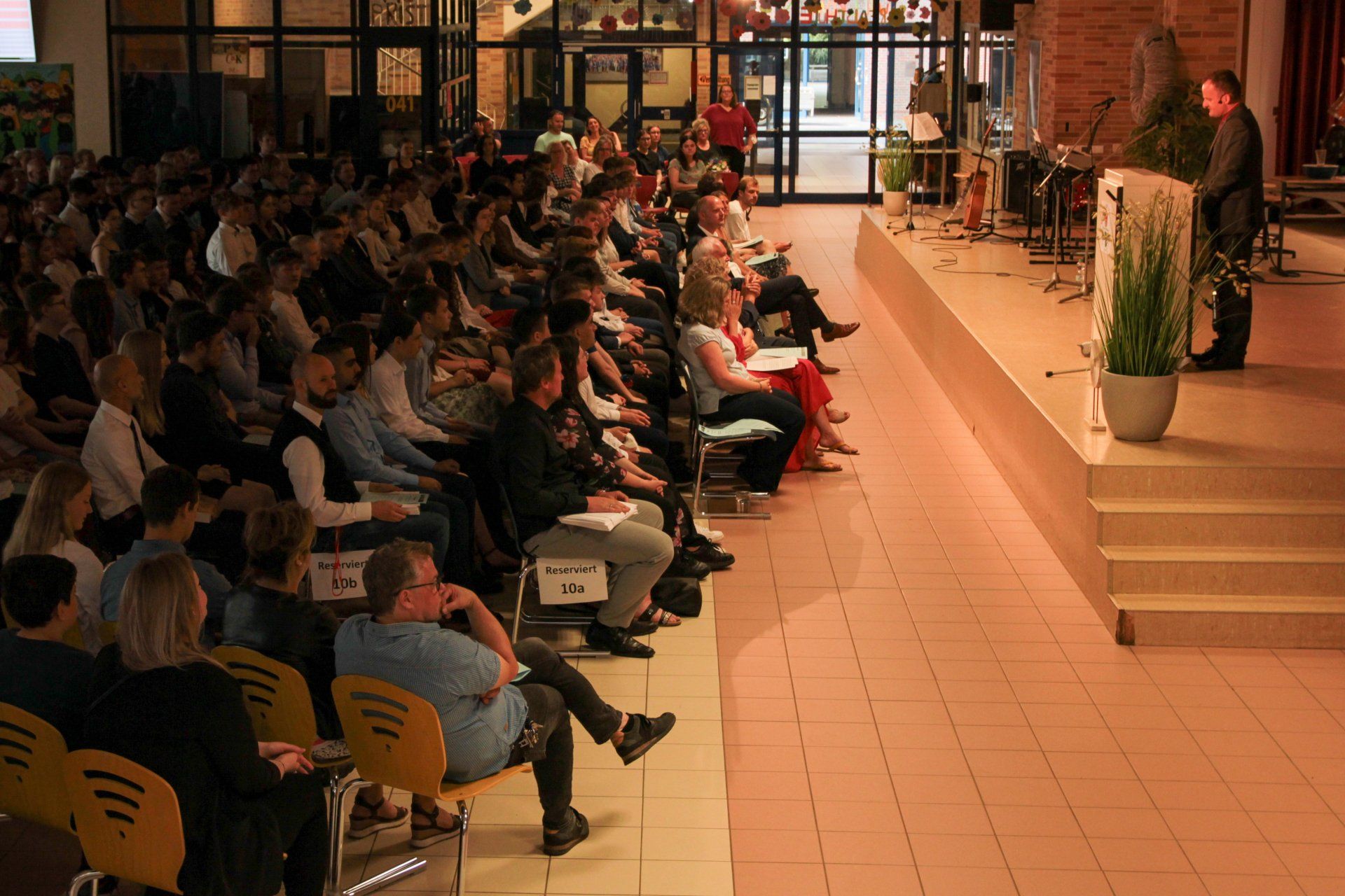 Mit einer inspirierenden und bewegenden Rede hat Herr Pössel heute rund 150 Schülerinnen und Schüler nach sechs Schuljahren an unserer Schule gebührend verabschiedet. Neben vieler Mut machender Worte verschiedener Redner:innen gab es auch einige unter die Haut gehende Musikbeiträge!