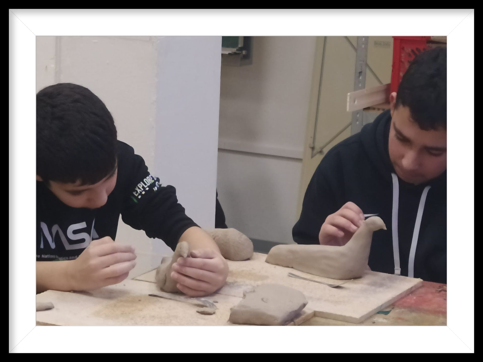 Im Kunstprojekt der siebten Klassen wurden Tiere aus Ton unter der Anleitung des Künstlers Curt Lehmann geformt. Jedes Kind hat ein großes Stück Ton bekommen. Mit dem Ton hat nun jeder ein Tier ganz nach seiner Vorstellung geformt. Zusätzlich wurde mit Wasser und Messern gearbeitet. Der Ton wurde zur Hälfte zum Tier, mit der anderen Hälfte wurde eine Platte gefertigt, auf der das Tier am Ende steht. Insgesamt hatten wir fünf Unterrichtsstunden Zeit, um unser Tier zu formen. Es war eine schöne Erfahrung, so etwas einmal selbst zu formen. Es sieht einfach aus, aber es braucht sehr viel Geduld. Es ist ein sehr schönes und interessantes Projekt. Die jüngeren Klassen, die es noch haben werden, können sich schon darauf freuen!