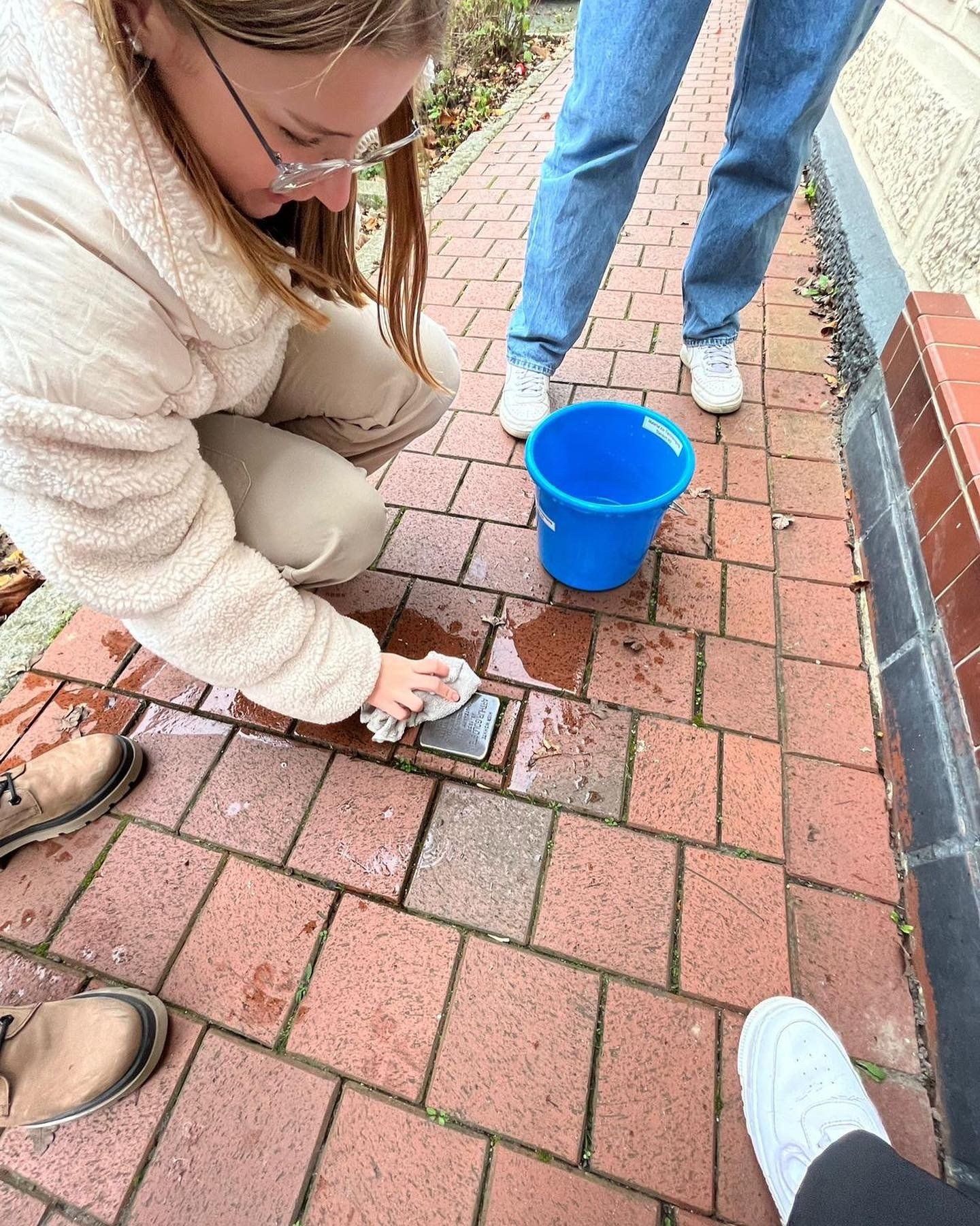 Neuntklässler putzen Stolpersteine für Erinnerungsgang (09.11.2022)