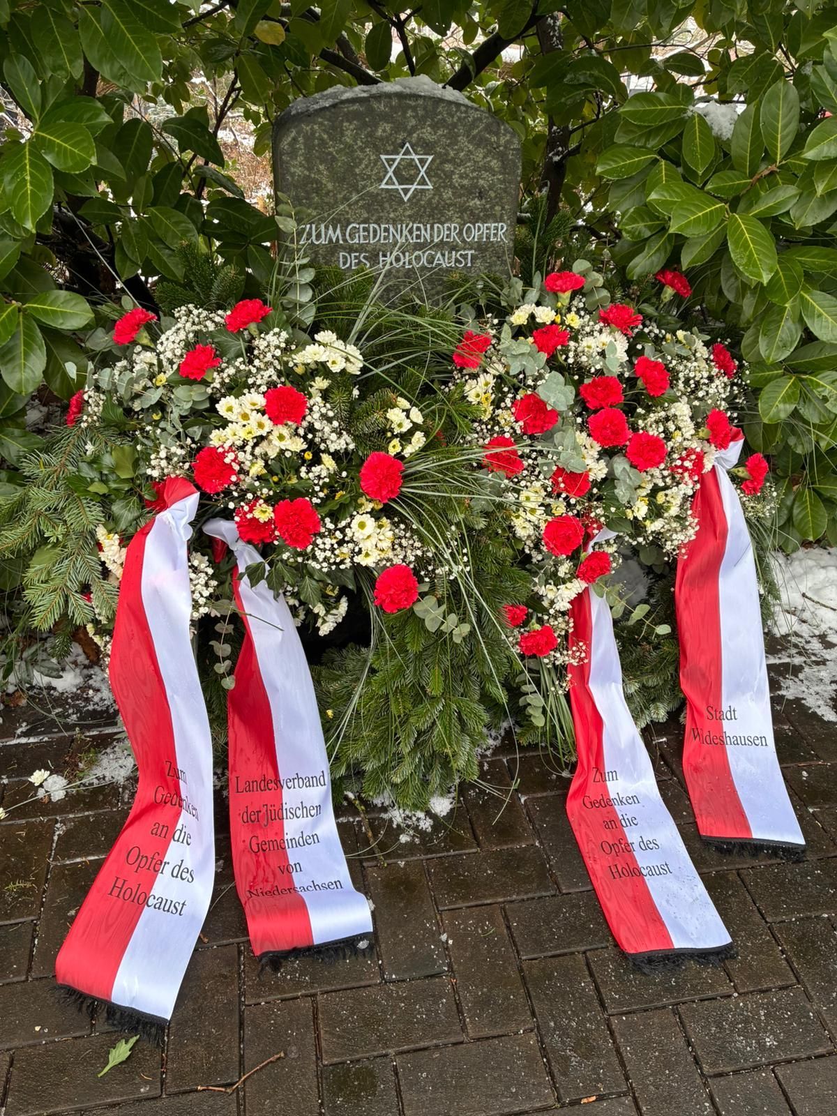 Am 27. Januar 1945 wurde das Konzentrationslager Auschwitz befreit und jedes Jahr an diesem Tag wird auch in Wildeshausen dem schrecklichen Holocaust gedacht, bei dem 6 Millionen Jüdinnen und Juden auf grausamste Art und Weise ihr Leben verloren. Auf dem jüdischen Friedhof in Wildeshausen trafen sich zum gemeinsamen Gedenken Vertreter des Jüdischen Landesverbandes sowie aller weiterführenden Schulen der Stadt Wildeshausen und Vertreterinnen und Vertreter der Stadt Wildeshausen. Dazu wurden Kränze niedergelegt und mahnende Worte durch die Redner gesprochen. Zwei Schüler aus der Klasse 9e verlasen hierzu die Namen der getöteten jüdischen Einwohnerinnen und Einwohner Wildeshausens.