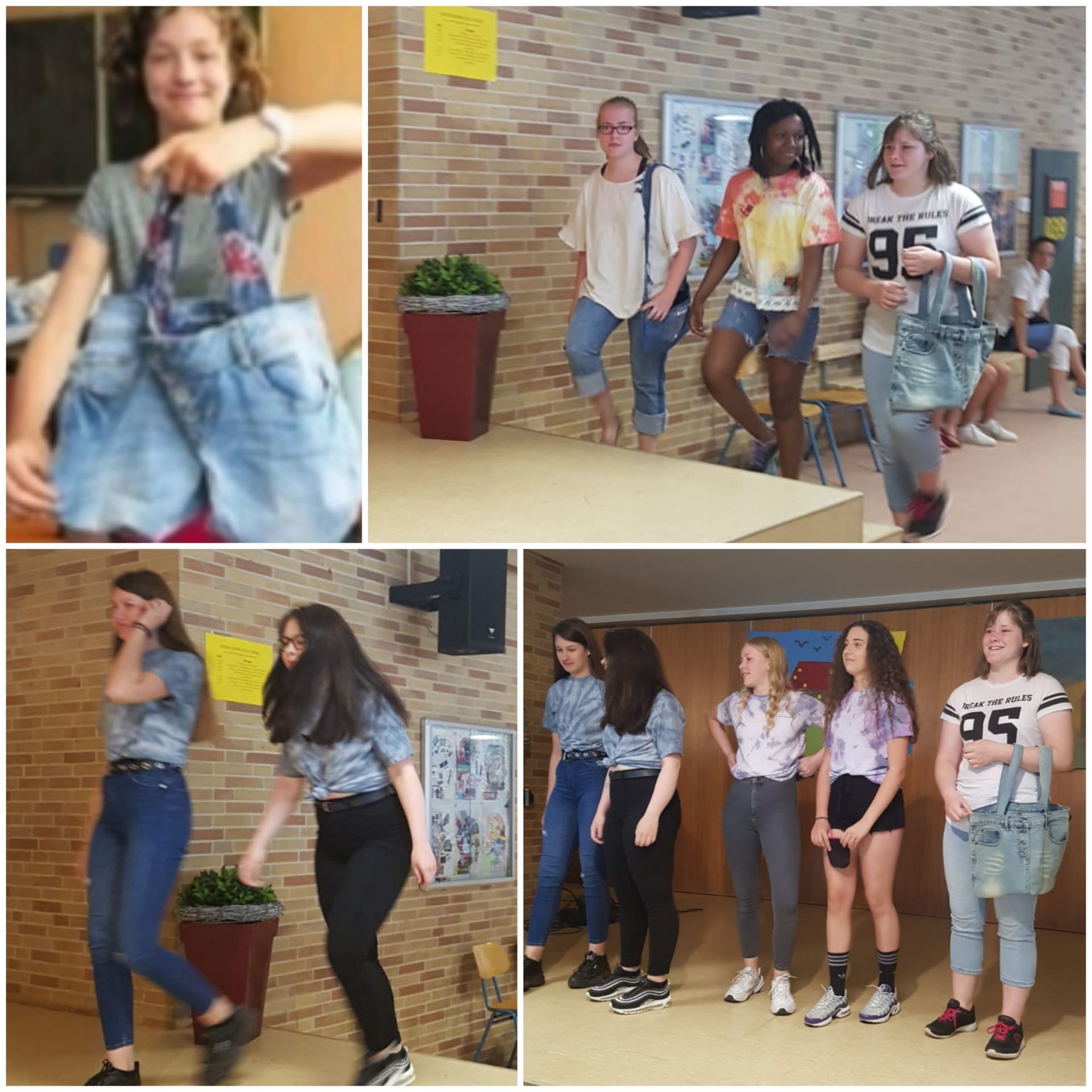 In der zweiten Werkstatt wurden alte Jeanshosen zerschnitten, um daraus, angeleitet von Frau Gastmann-Kok, Handyhüllen, Utensilos und kleine Taschen mit der Maschine zu nähen und künstlerisch zu gestalten.